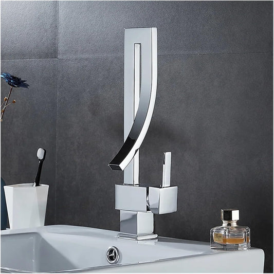 Waterfall 360° Moveable Faucet in Shiny Chrome for Bathroom and Wash Basin | Stainless Steel | Hot and Cold Mixer