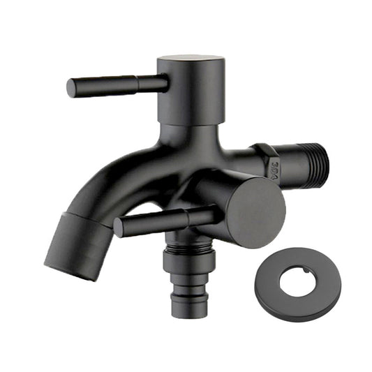 Two Way Double Bib Tap in Stainless Steel for Bathrooms, Kitchens in All Black, Wash Areas or Washing Machine