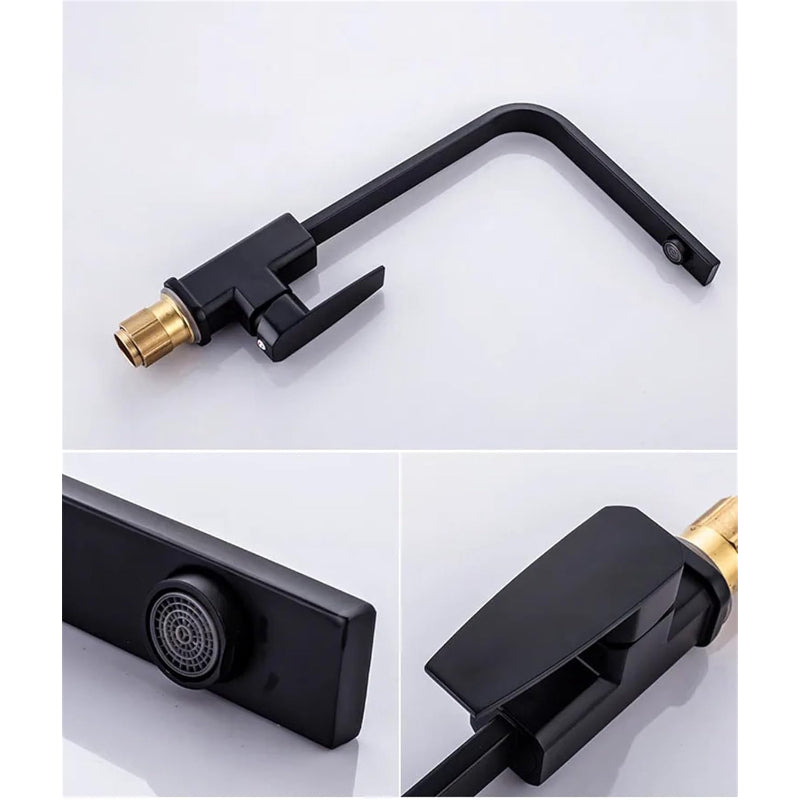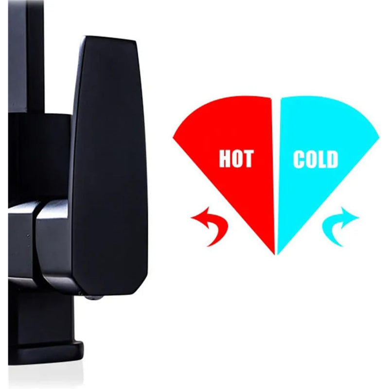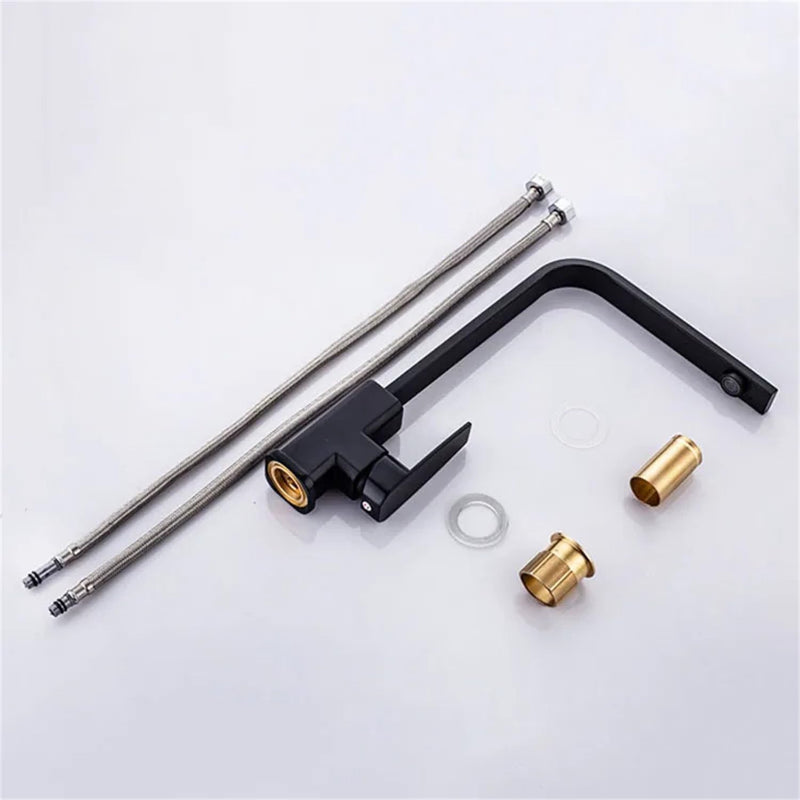 Premium 14" inches L-Shape Stainless Steel Kitchen Faucet in Matt Black | Hot and Cold Mixer | Single Handle| 360° Moveable