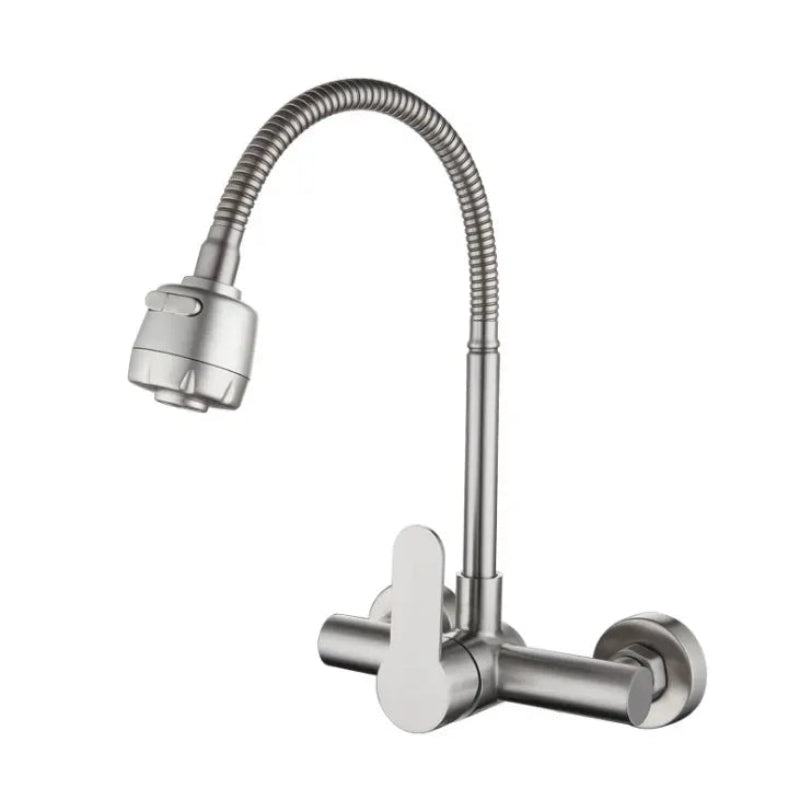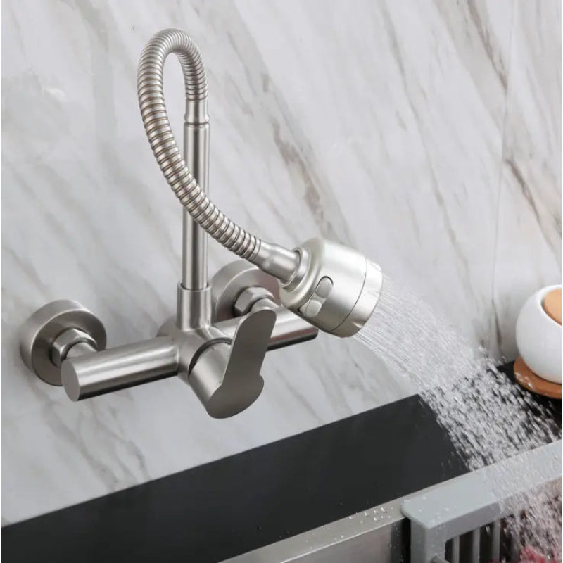 Premium 12" inches Long Neck Stainless Steel Kitchen Faucet | Hot and Cold Mixer | Wall Mount | 360° Moveable