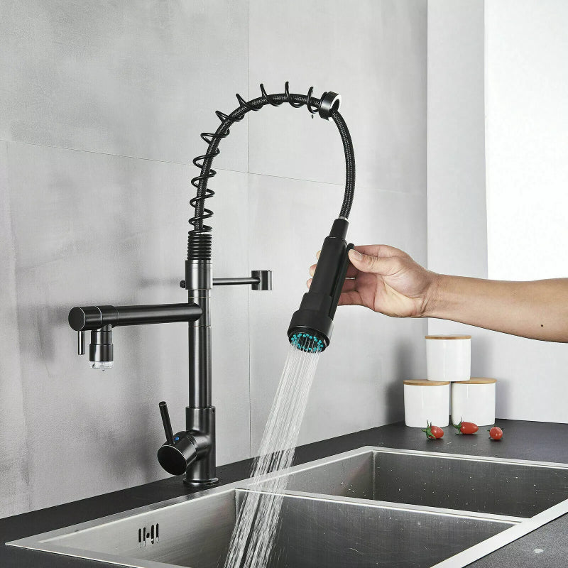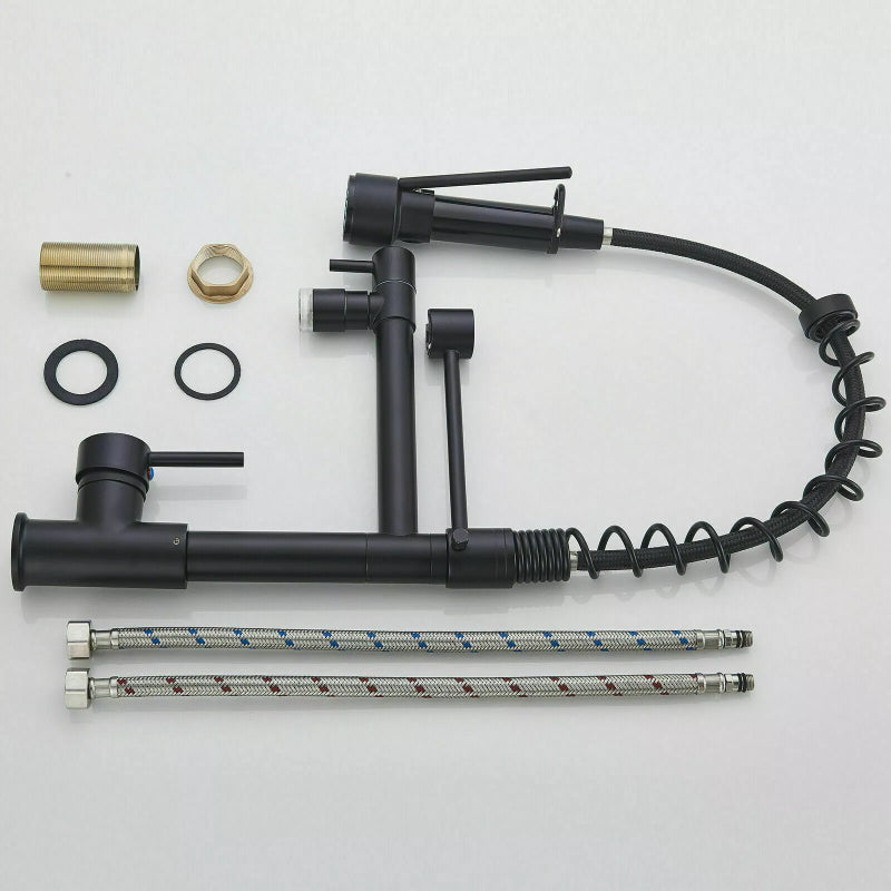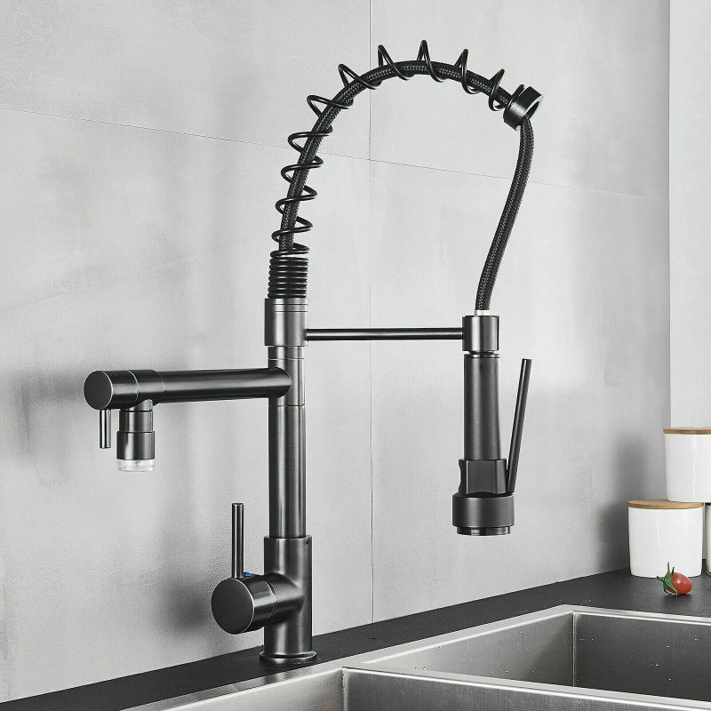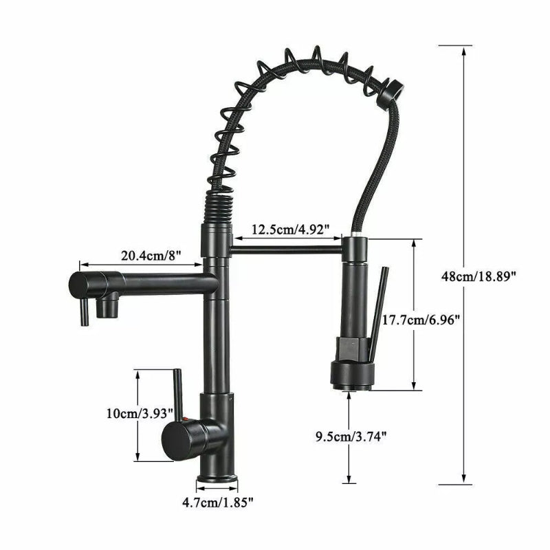 Premium 15" inches Pull Out Premium Kitchen Faucet in All Black | Hot and Cold Mixer | Pull Out Spray | 360° Moveable