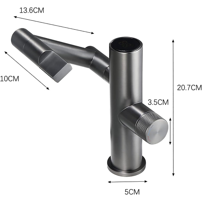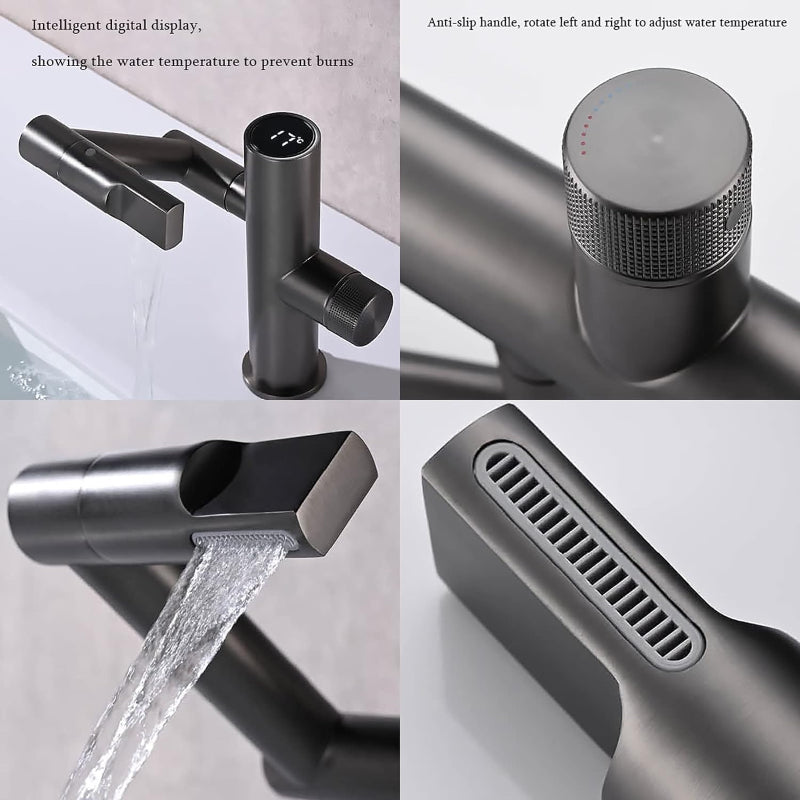 Premium 360° Swivel Waterfall Sink Faucet with Digital Temperature Display for Bathroom and Wash Basin in Metallic Grey | Hot and Cold Mixer