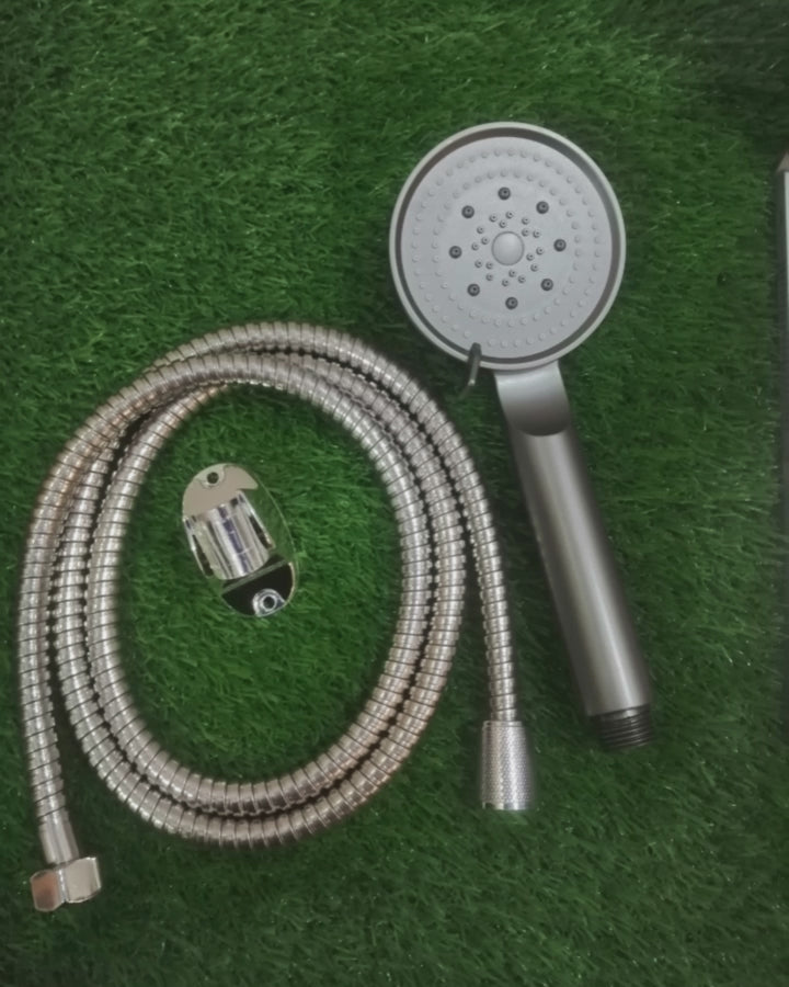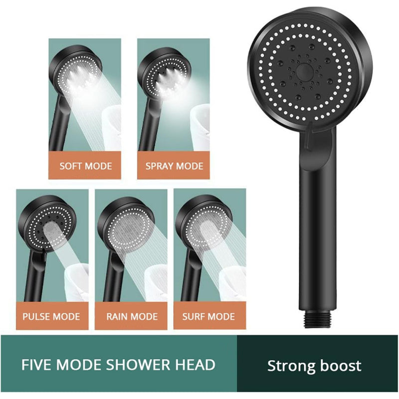 5 in 1 Hand Shower Set with Mist for Bathing in Matt Dark Grey | Durable ABS Plastic | 9" inches Head and 1.5 Meter Stainless Steel Chrome Pipe