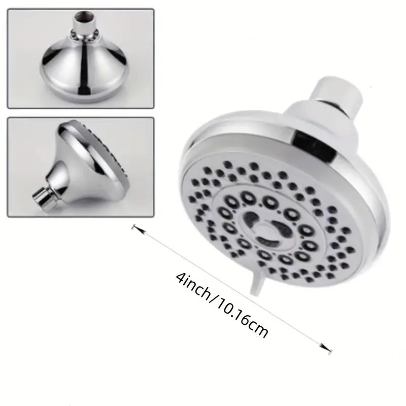 5 in 1 Round Bathing Shower Head 4" inches in Chrome | Durable ABS Plastic | High Pressure