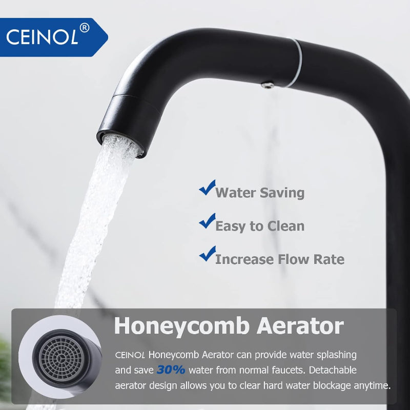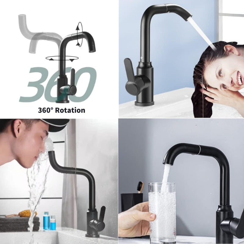 Premium Material: The sink faucet is made of solid SUS 304 stainless steel with a black finish, durable and sturdy, lead-free, and protects the health of your family.