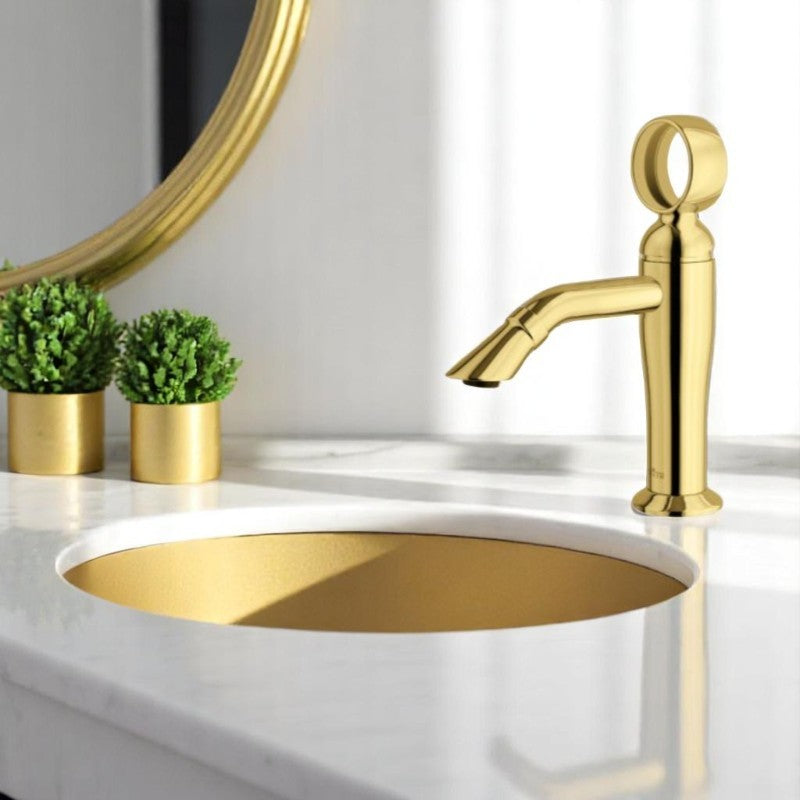 Introducing our Bathroom Wash Basin Faucet Ring Style in Gold, featuring a hot and cold mixer for optimal temperature control. Its elegant design adds a touch of luxury to any bathroom while providing a functional and comfortable experience. Upgrade your bathroom with this sleek and efficient faucet.