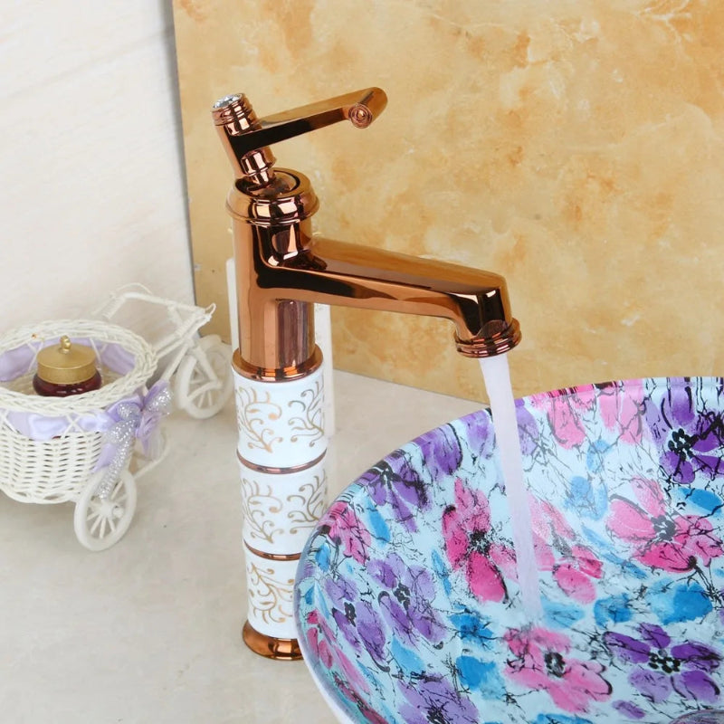 Bathroom Wash Basin Faucet in Rose Gold | Hot and Cold Mixer