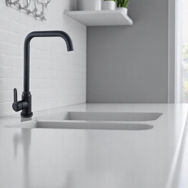 Bay Neck Kitchen Faucet Counter Top Matt Black in Stainless Steel | Hot and Cold Mixer | Easy to Install