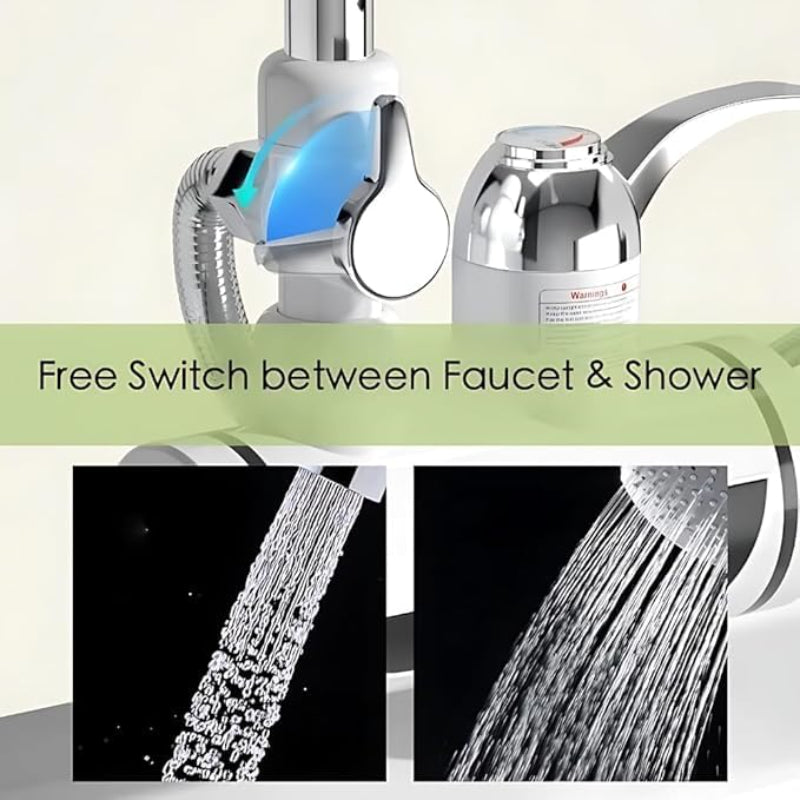 Instant 360° Electric Water Heating Tap + Shower + 1 Meter Pipe | Shock-Proof Design | Digital Temp° Display | Hot and Cold Water