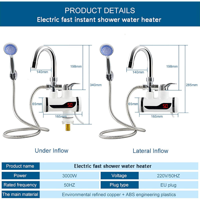 Easy Installation and Flexible Design: The fast heating tap is easy to install, with all necessary accessories included. Its flexible design includes a 360° rotating water pipe and a universal hose that can be twisted and turned in any direction, making it perfect for various uses and applications. The faucet features a unique water and electricity separation design that ensures safety and peace of mind during use. Its internal water and electrical circuits are completely separate, preventing water and electricity from interfering with each other. It also has an IPX4 waterproof rating and built-in anti-dry heating protection for added safety.