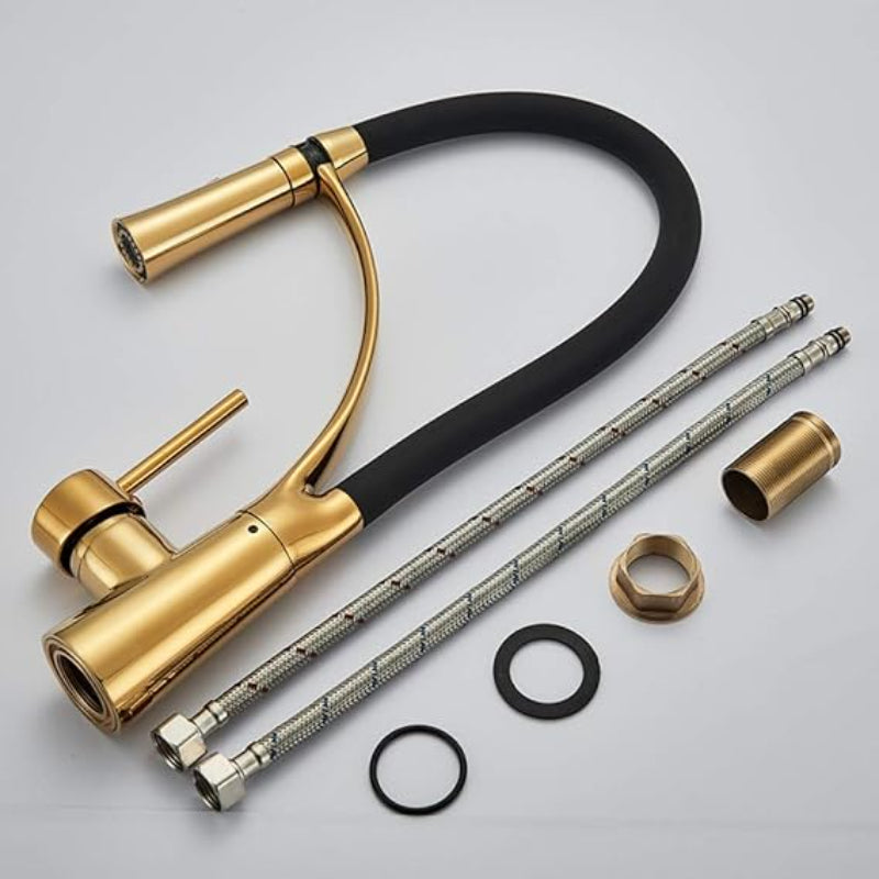 Upgrade your kitchen with our Premium and Classical Stainless Steel Kitchen Faucet in Black Gold. Enjoy the convenience of Hot and Cold Mixer and the flexibility of 360° Moveable feature. With a single handle, experience a sleek and modern design while ensuring efficiency in every use.