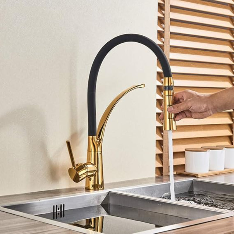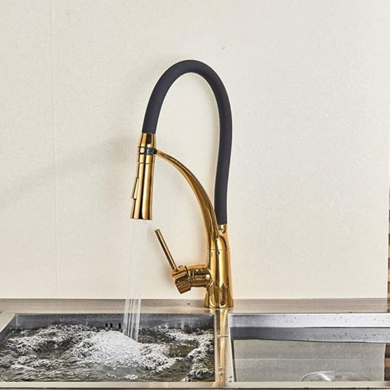Premium and classical Stainless Steel Kitchen Faucet in Black Gold | Hot and Cold Mixer | 360° Moveable| Single Handle