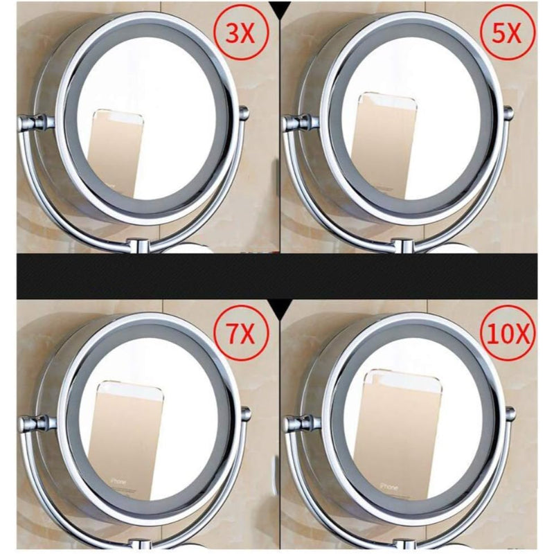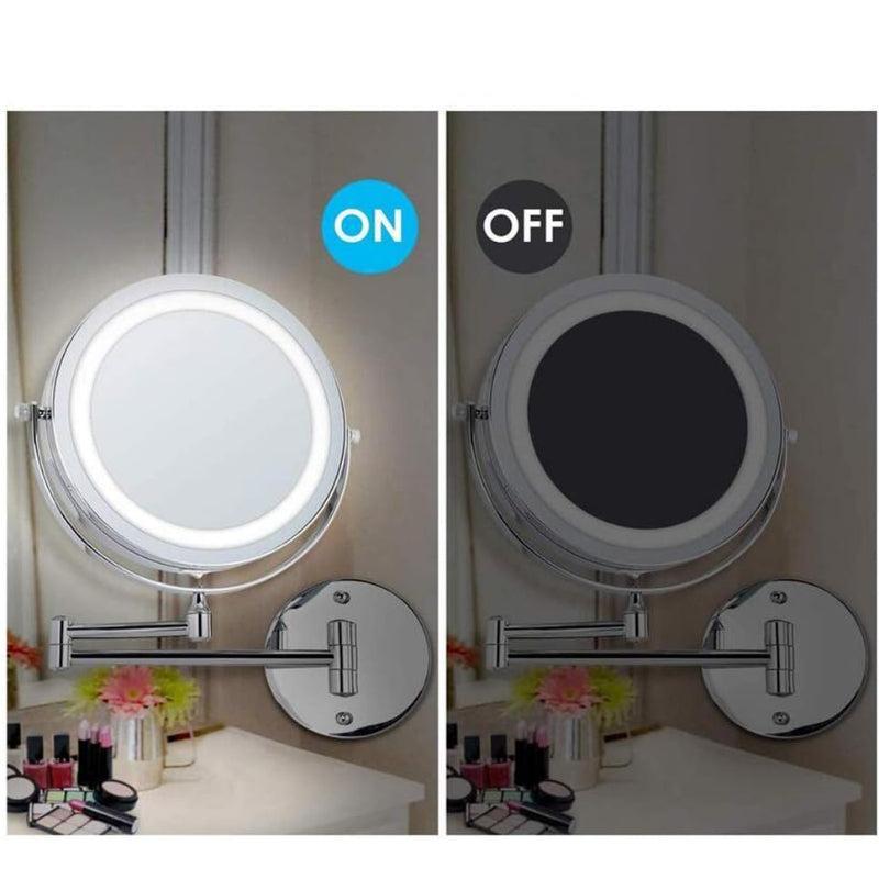 8" inches LED Makeup Mirror 360° Moveable for Dressers, Bathrooms | Magnifying + Normal Dual Mirror | Wall-Mounted