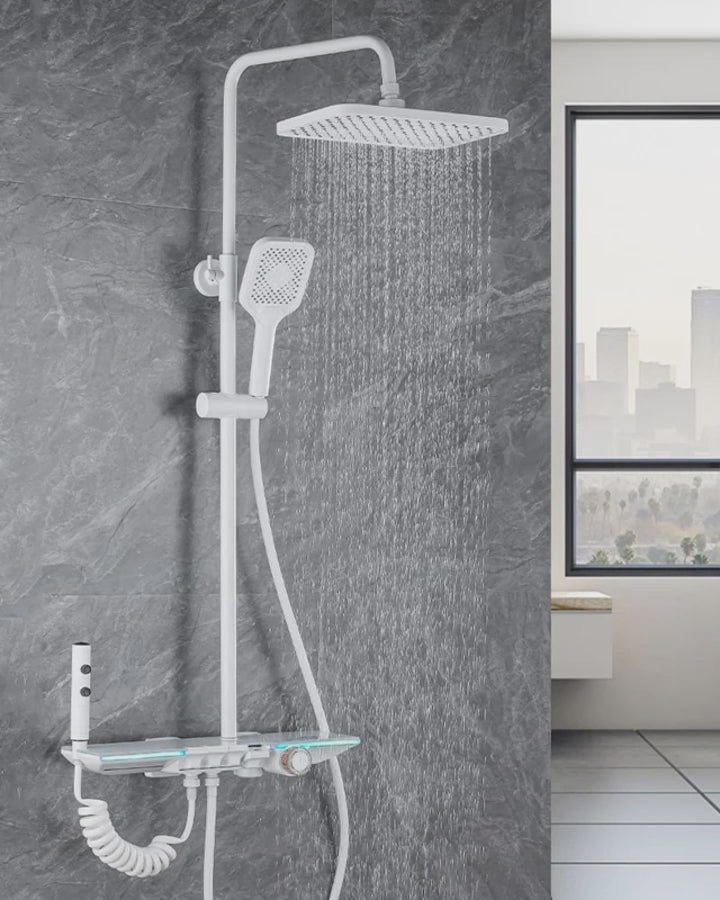 Easy to Use: With piano keys as the design concept. You can switch between rain shower, hand shower, bidet sprayer and bathtub faucet at the touch of a button. When you take the shower, you can see the water temperature and shower time, helps you to find the most comfortable water temperature, and let you enjoy the shower