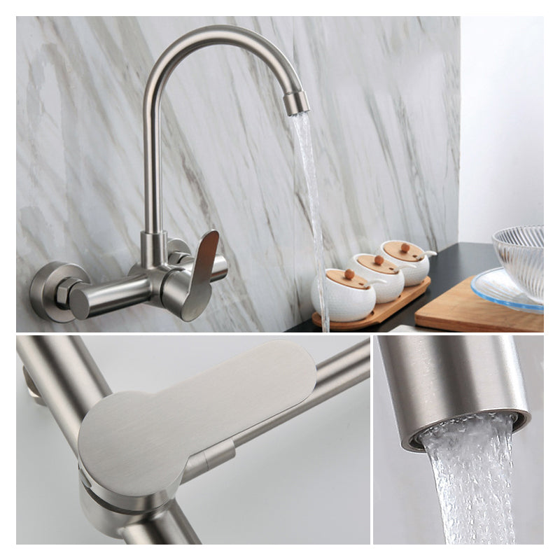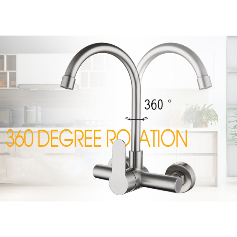 Premium 12" inches Kitchen Faucet in Stainless Steel | Brushed Nickle | Hot and Cold Mixer | Wall Mounted | 360° Moveable