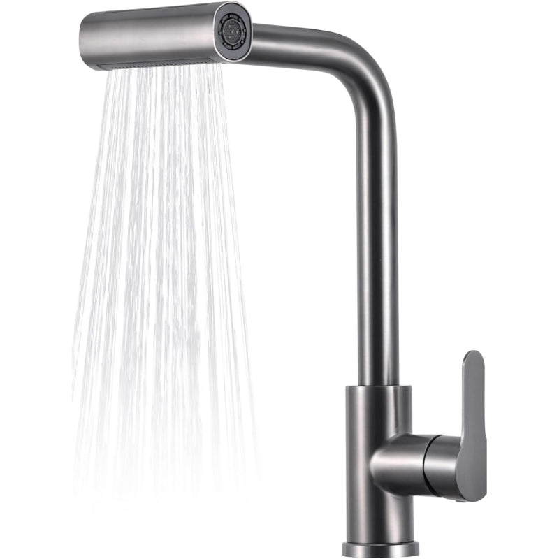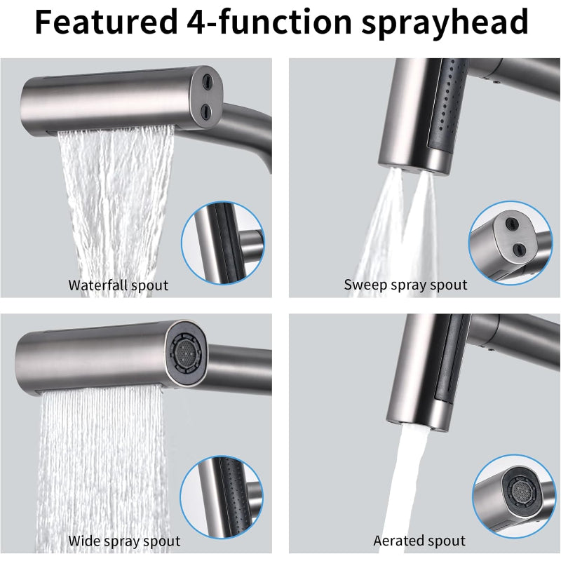 4 in 1 Waterfall 11" inches Kitchen Faucet in Gun Metal | Stainless Steel Body with ABS Plastic Sprayer | Hot and Cold Mixer | 360° Moveable