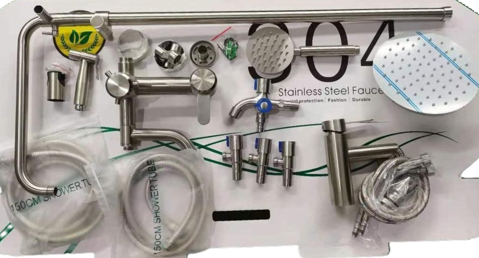 Complete Bathroom Shower Set with Toilet Shower and Basin Faucet in Stainless Steel | Hot and Cold Mixer