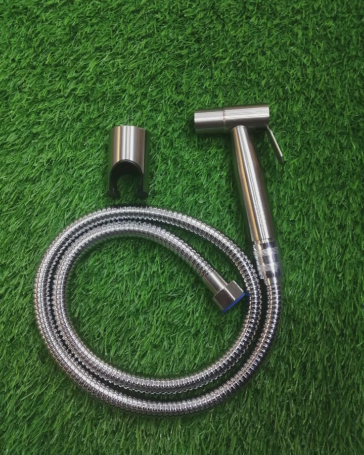 Stainless Steel Muslim Shower Set 5"inches Head + 1 Meter Pipe in Silver | High Water Pressure | Easy Installation | Bathroom and Toilets