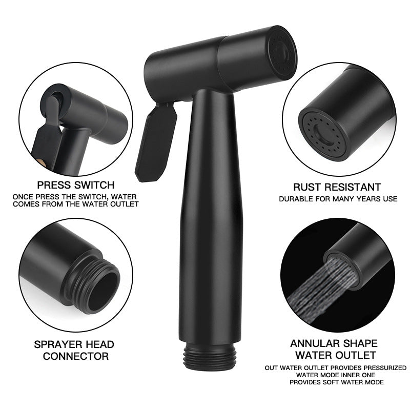 Stainless Steel Muslim Shower Head in Matt Black 5"inches for Bathroom and Toilets | High Water Pressure | Easy Installation
