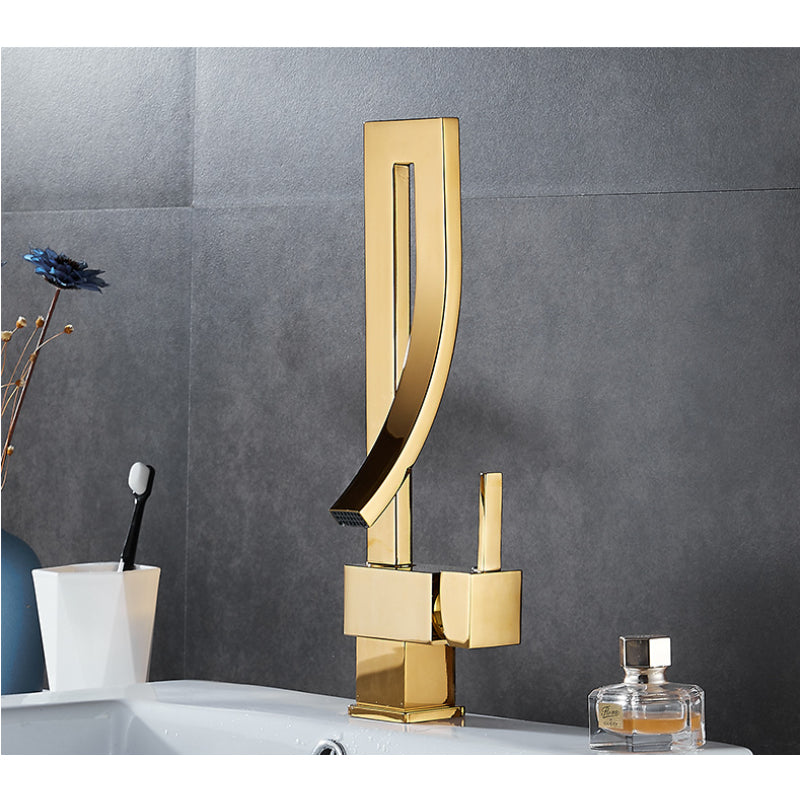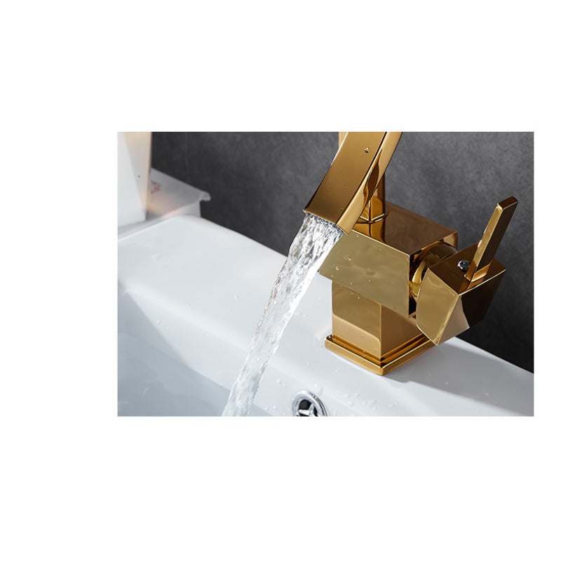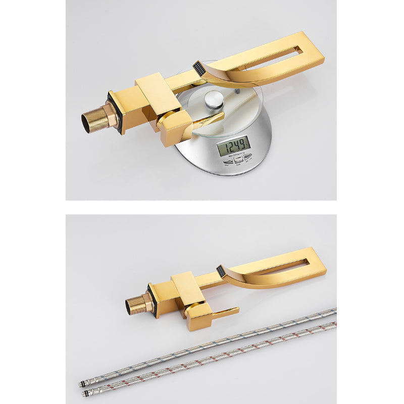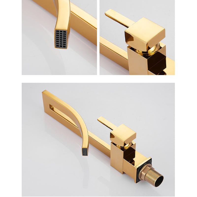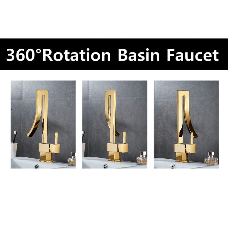 Waterfall 360° Moveable Faucet in All Gold for Bathroom and Wash Basin | Stainless Steel | Hot and Cold Mixer