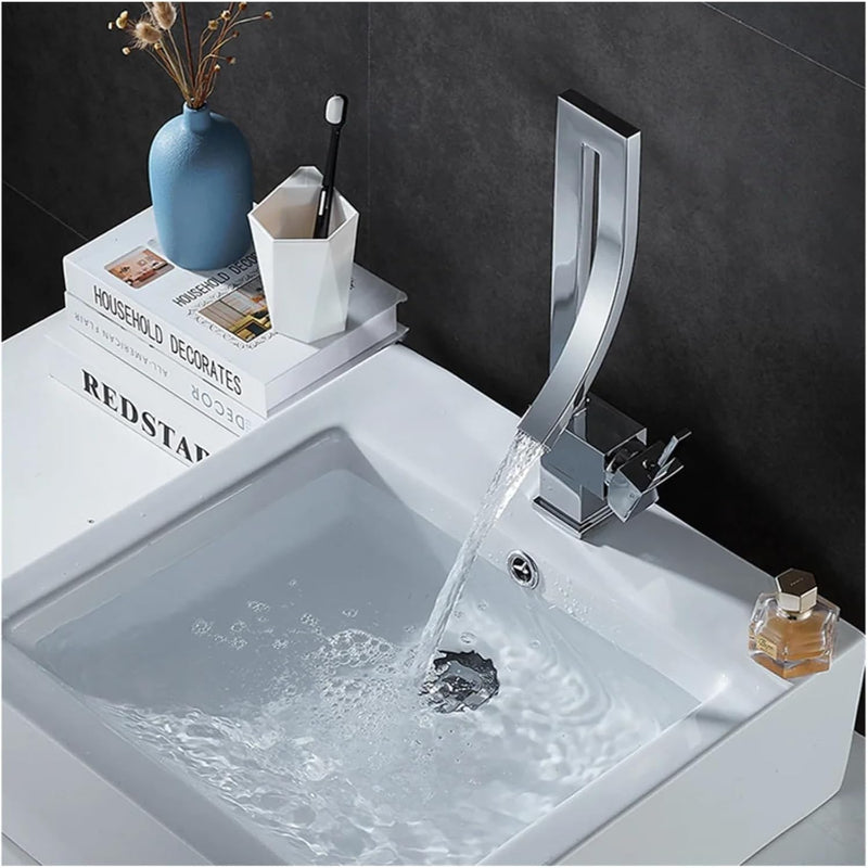 Waterfall 360° Moveable Faucet in Shiny Chrome for Bathroom and Wash Basin | Stainless Steel | Hot and Cold Mixer