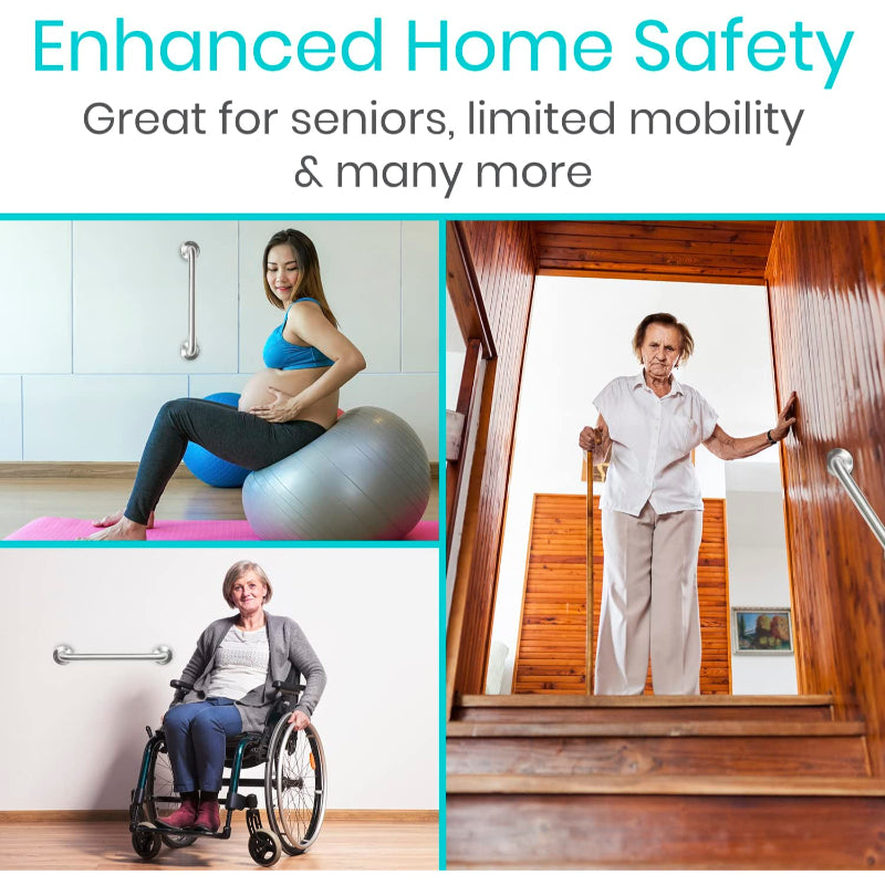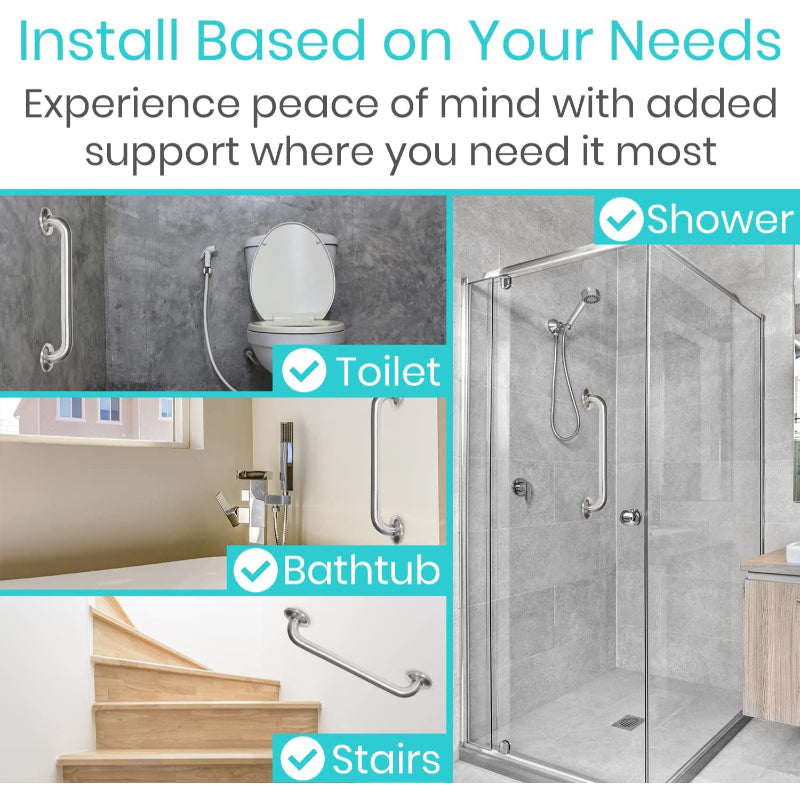 Multipurpose Usage: This Grab Bar support is suitable for everyone - the Elderly, Pregnant women, Kids, Differently-abled, etc. It has a wide range of application areas - bathrooms, toilet commodes, shower areas, passage areas, stairways, etc.